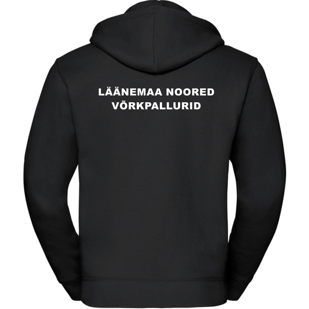 Läänemaa Spordikool luku ja kapuutsiga pusa, must