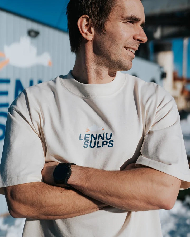 Lennusulps classic T-shirt is made from a comfy material and is oversized. Small logo at the front and big writing on the back to let everybody know you're one of us. Lennusulps merch has been created with love like our cozy winter swimming club. Lennusulps bird symbolizes our quirky and fun relationship with the water. Wear Lennusulps merch and spread our vibe!